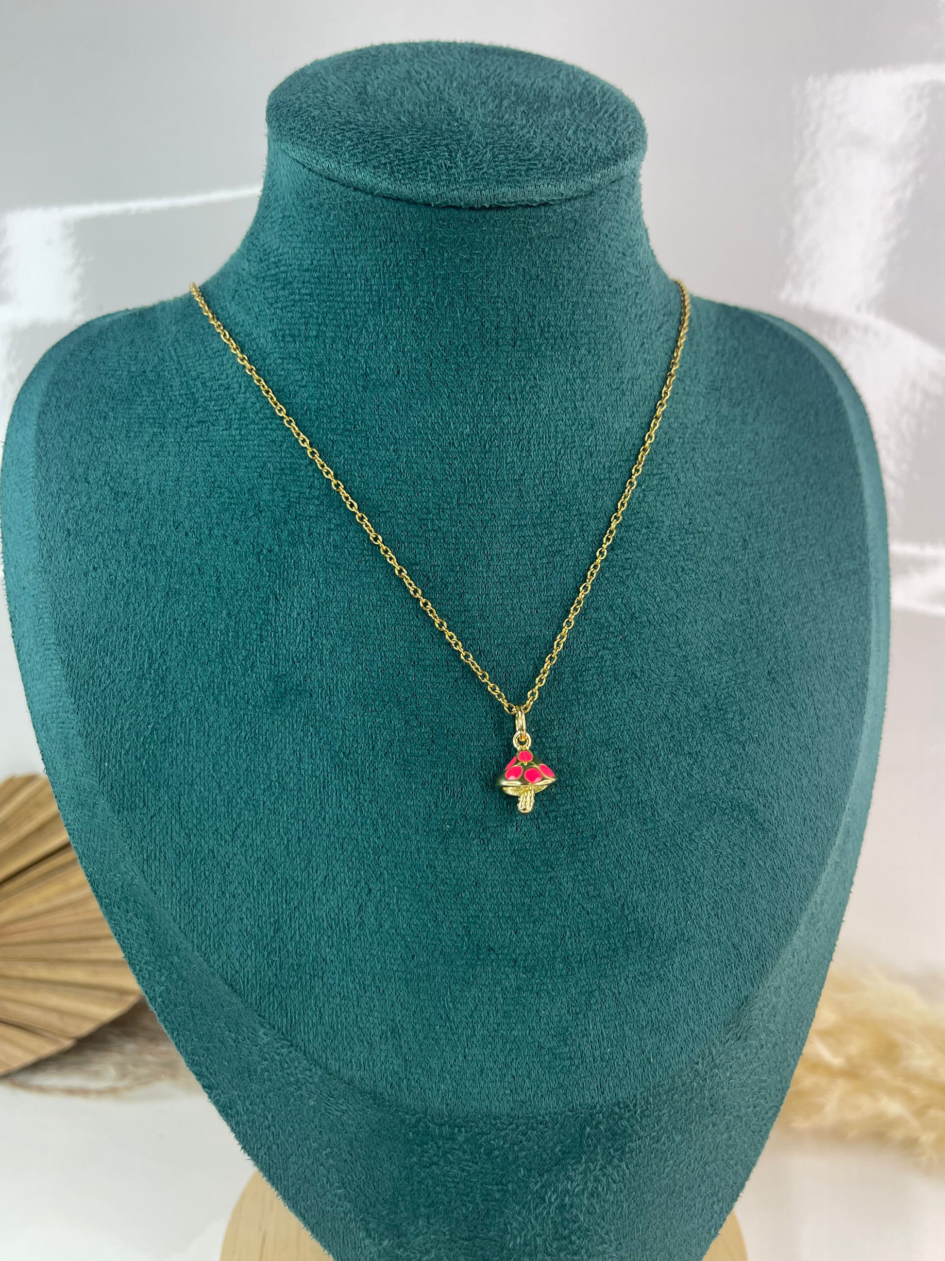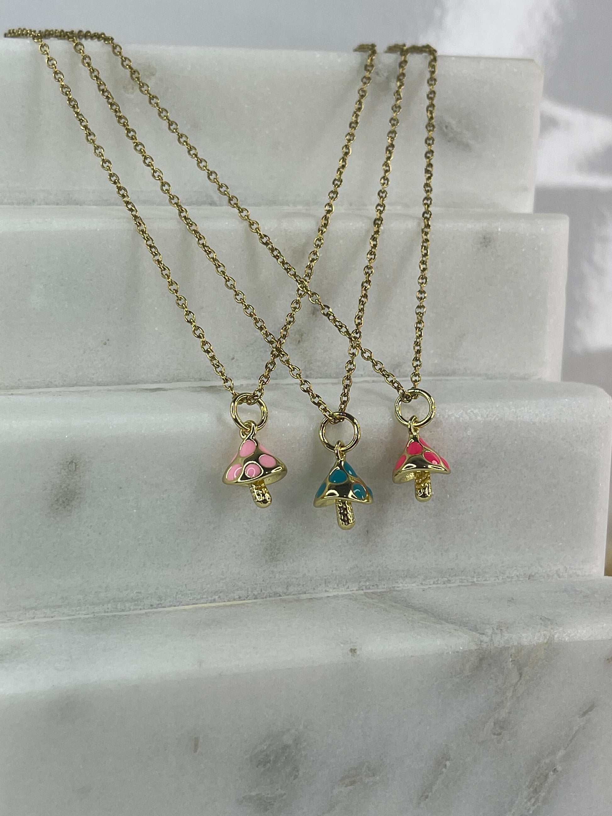 Cadenas de champiñones totalmente elegantes y perfectas para el uso diario. Son fabricadas en stainless steel, su medida es de 16" y está disponible en color fucsia, azul y rosada.