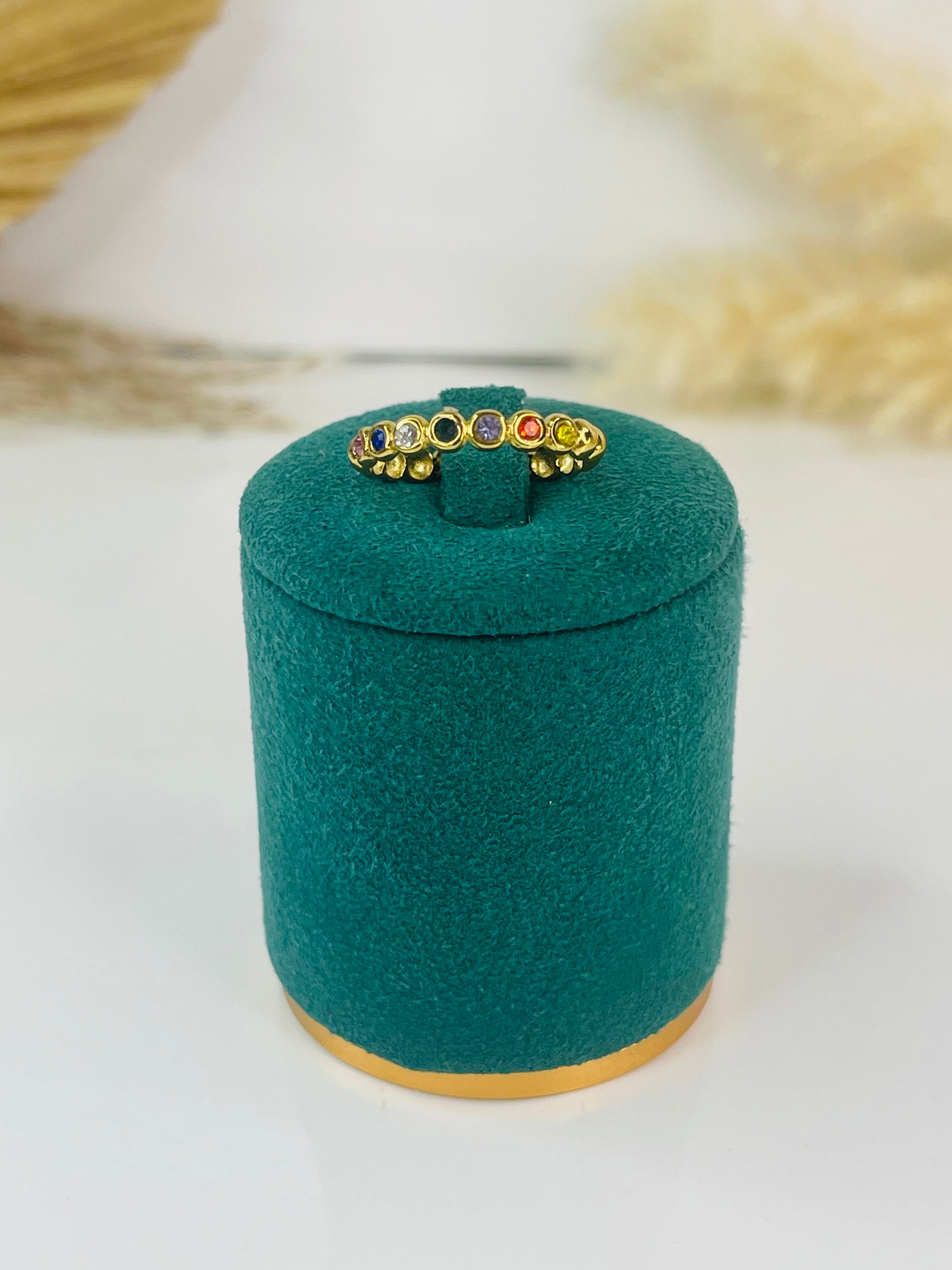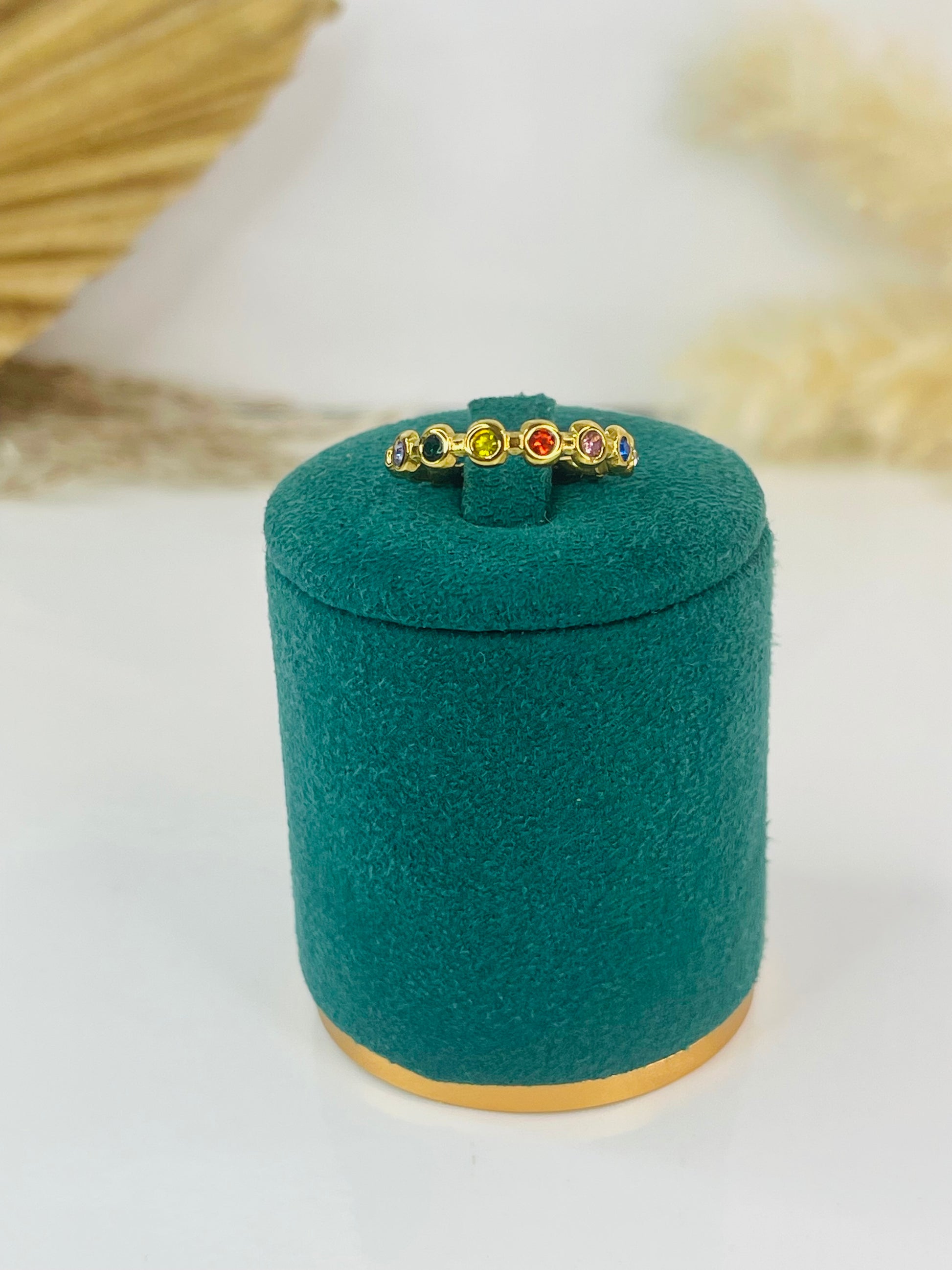Es el anillo perfecto para utilizar a diario, sus detalles en diamantes de colores la hacen lucir perfecta. Está hermosa pieza está fabricada en stainless steel.