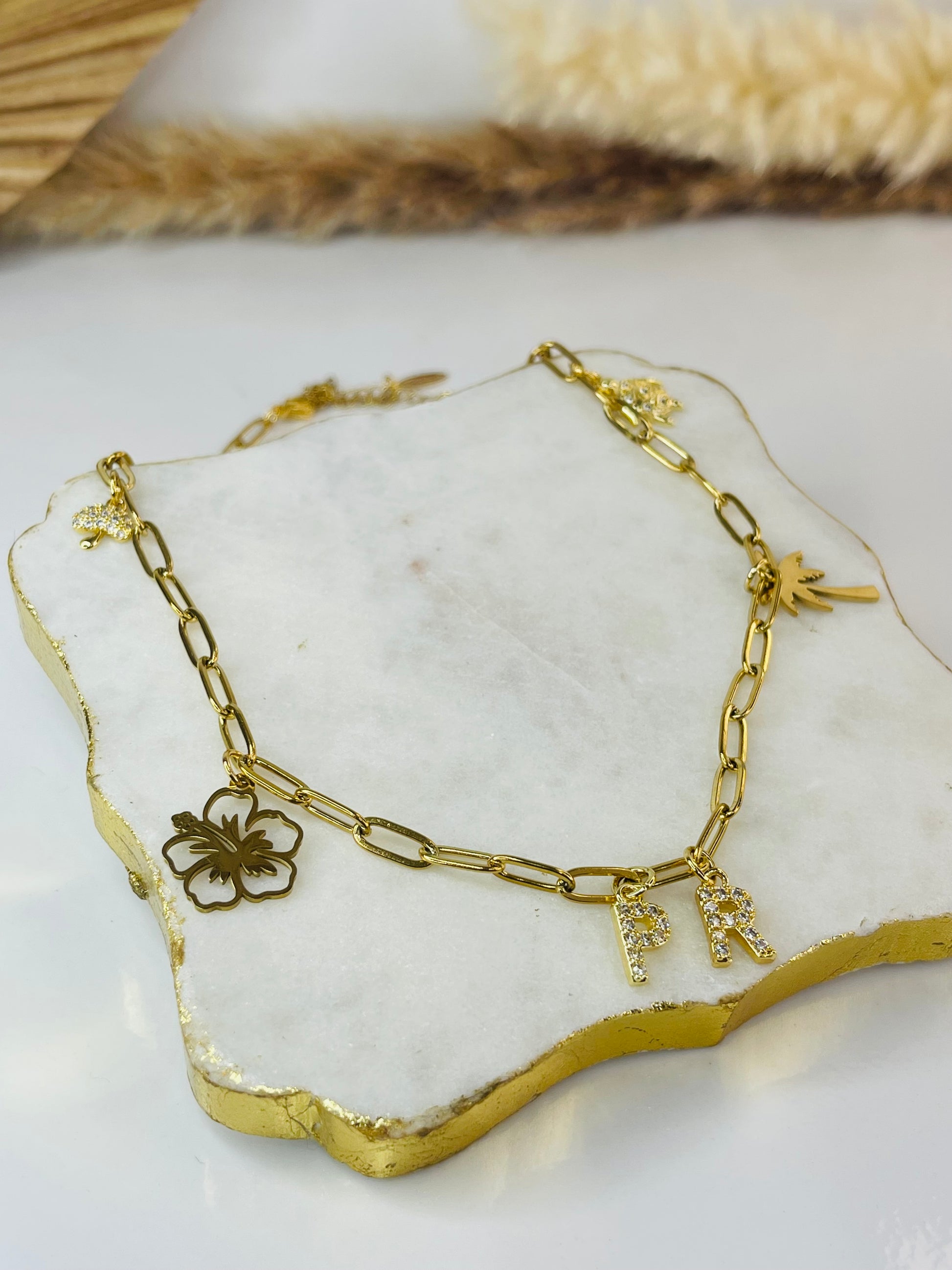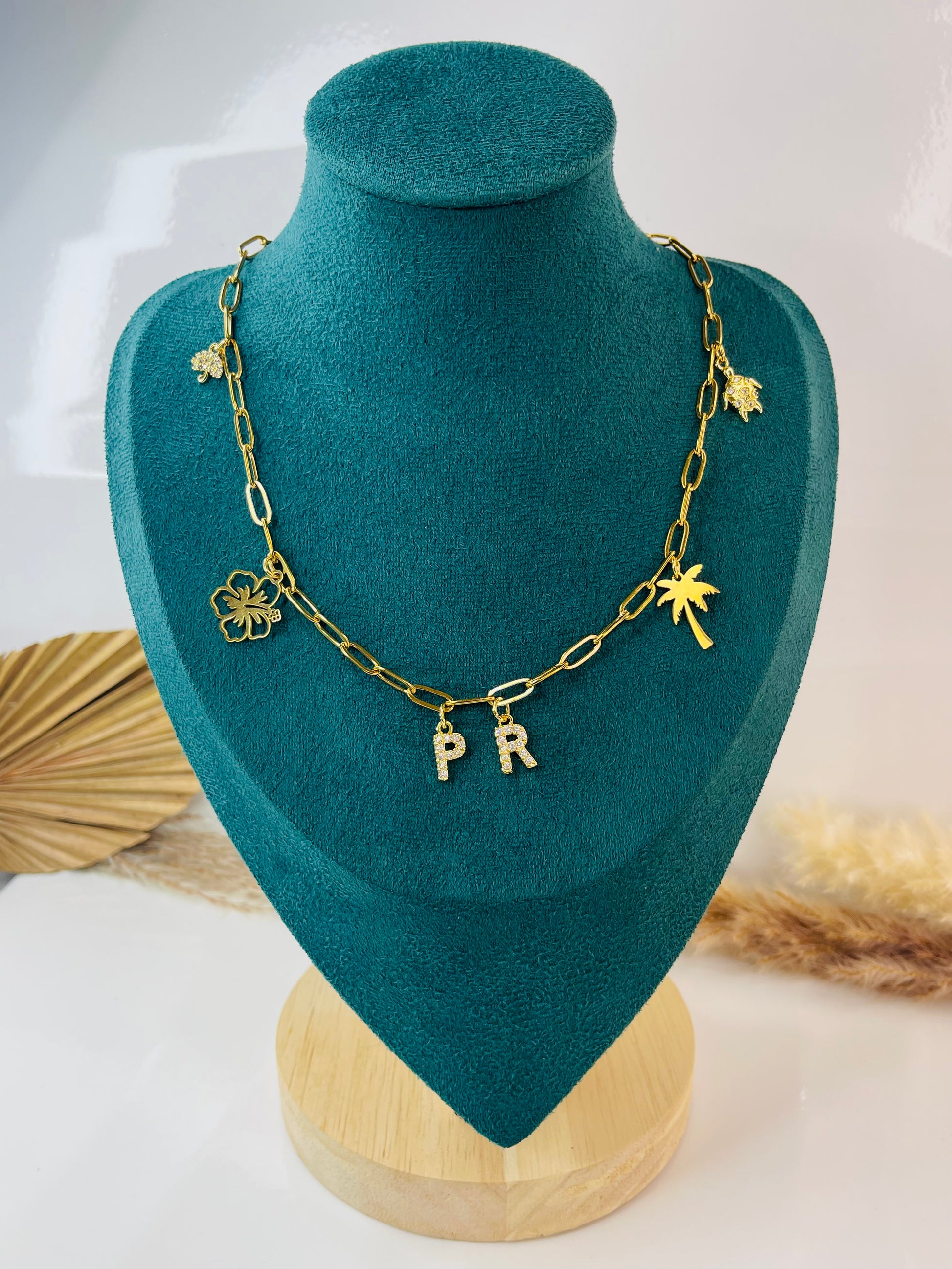 Cadena "Isla del Encanto" está inspirada en las bellezas de Puerto Rico, está fabricada en stainless steel, su medida es de 14" y tiene extensión de 2". Es la pieza perfecta para tener un estilo único y especial.