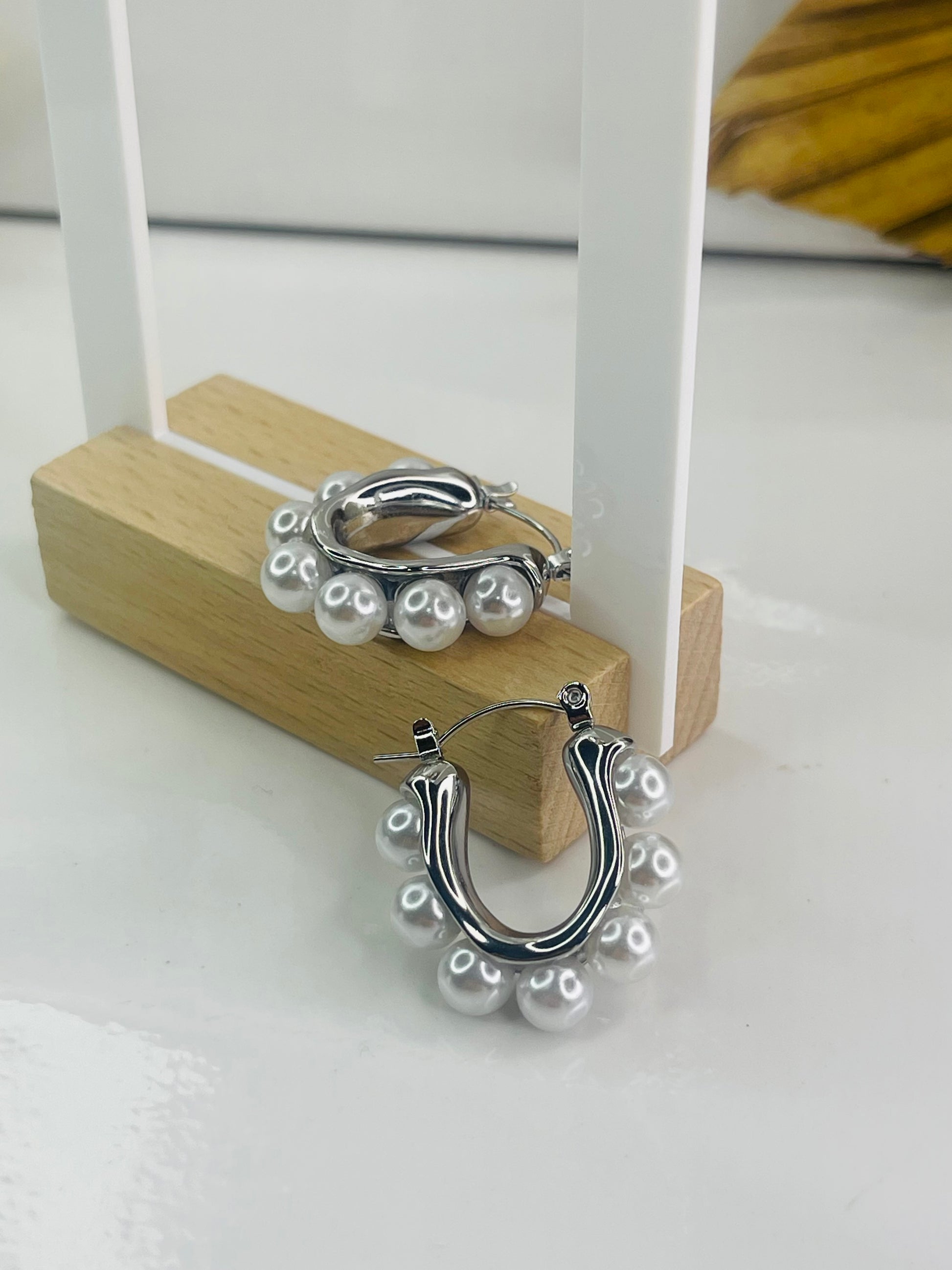 Material: Stainless steel y perla de agua dulce.