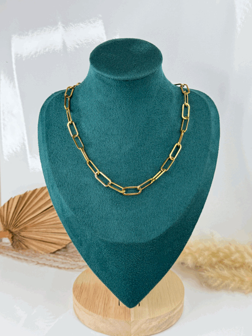 Hermosa cadena Luz, es perfecta para esa ocasión especial. Una pieza en tendencia, que está fabricada en stainless steel, su medida es de 15" más 2" de extensión.