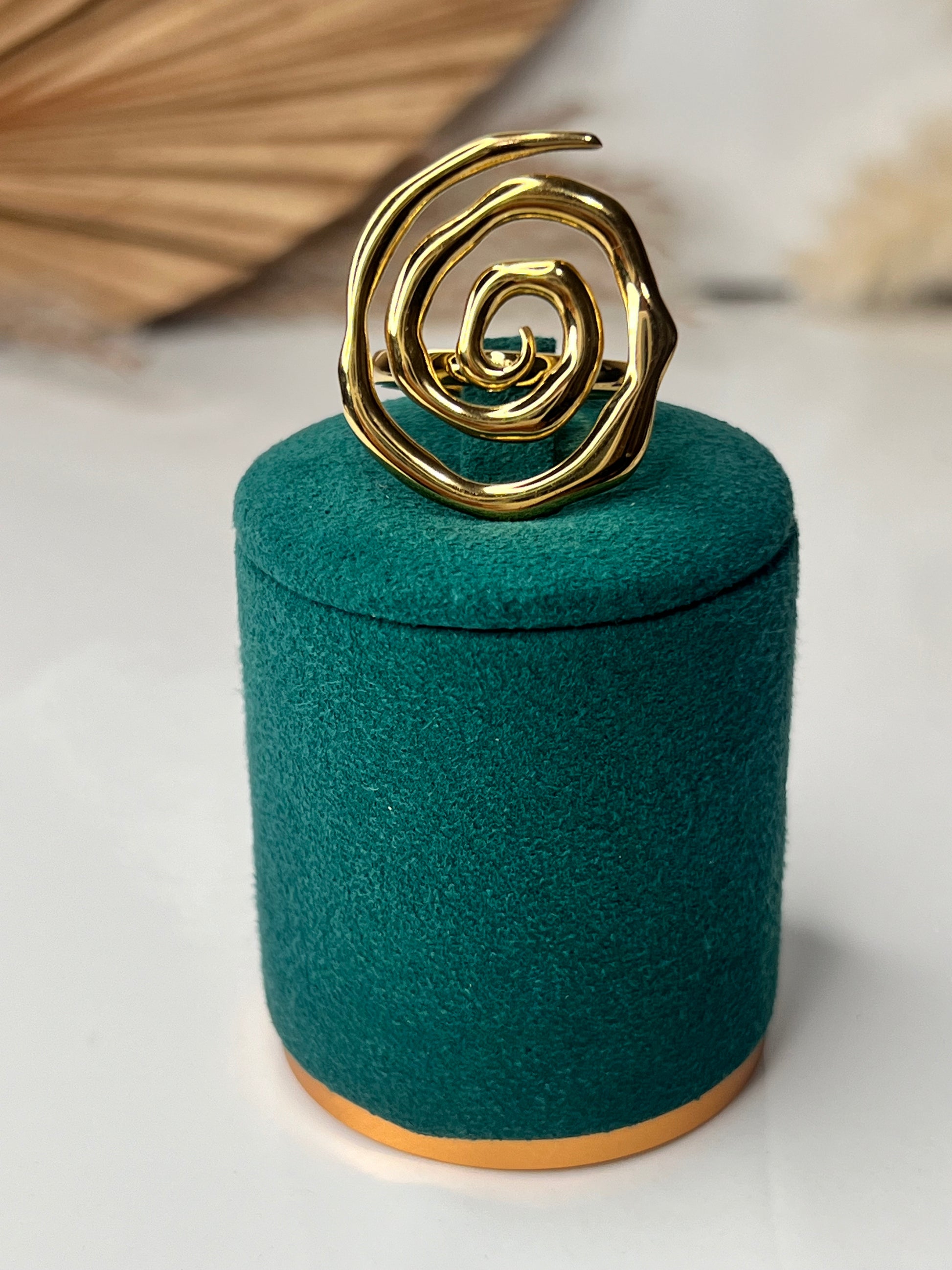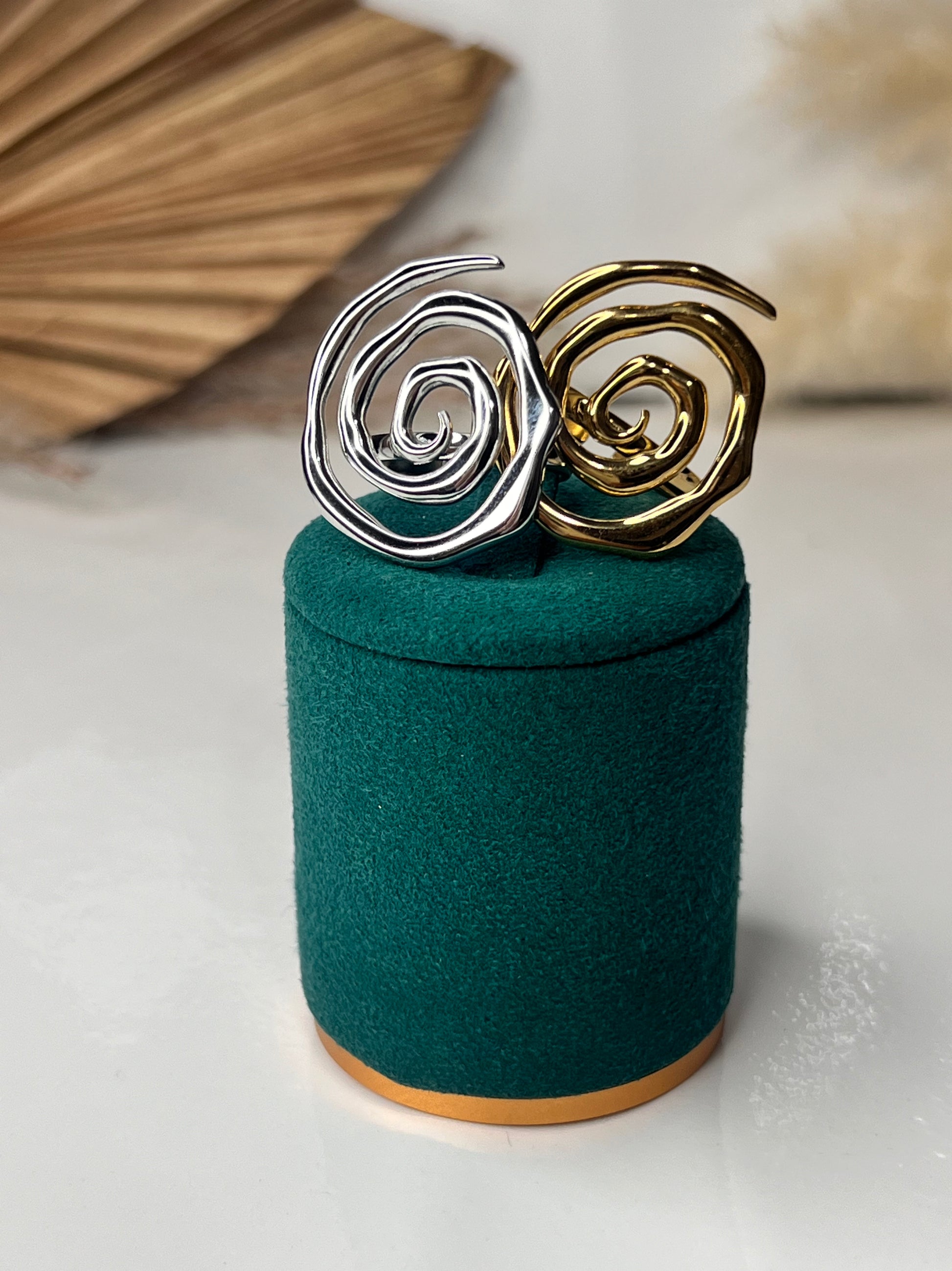 Espectacular anillo Nico, estilo espiral disponible en color dorada y plateado. Un anillo que te brinda la seguridad y elegancia que mereces, está fabricada en stainless steel, totalmente ajustable.