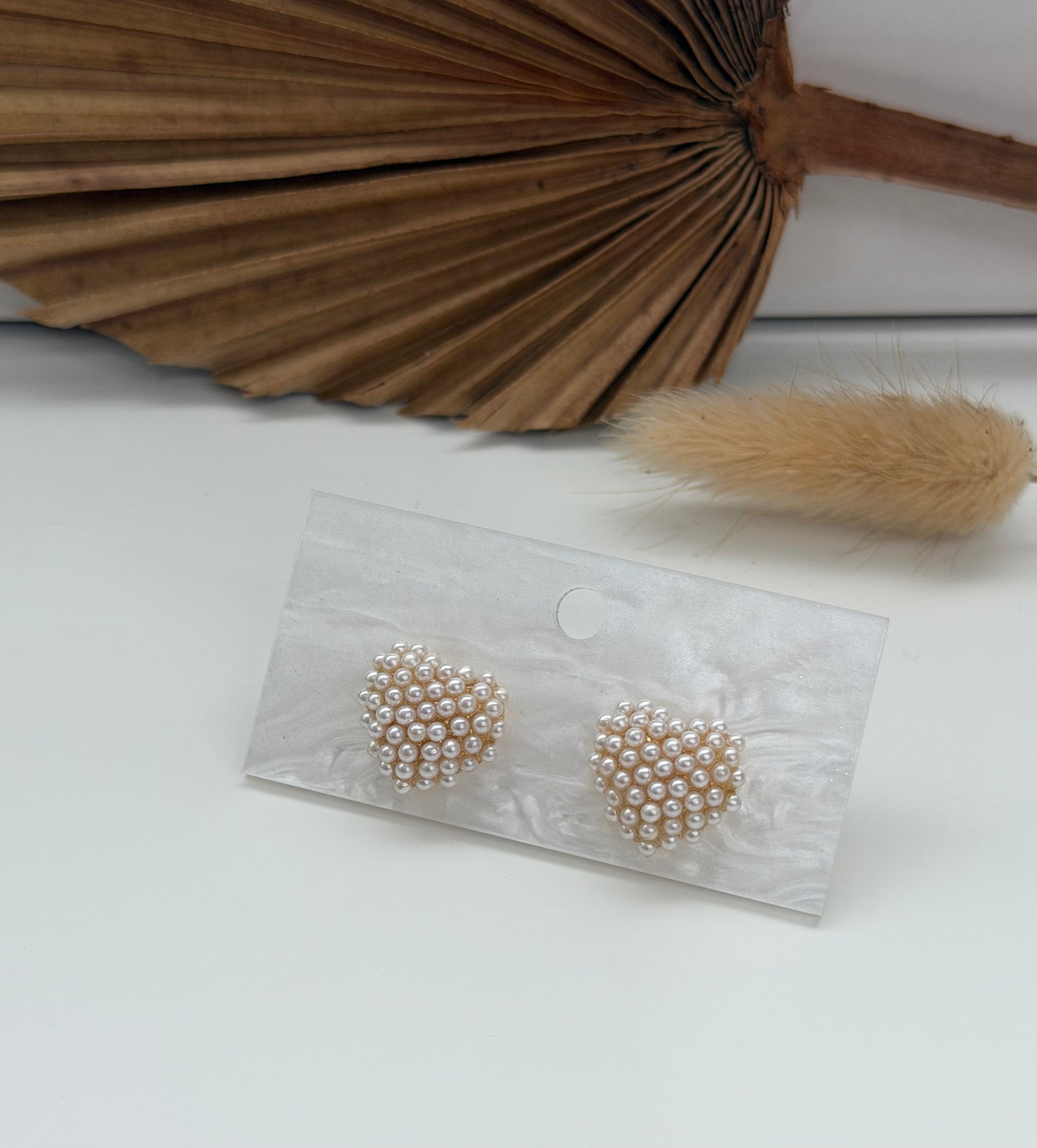 Hermosos aretes en forma de corazón, cubiertos de perlas de agua dulce.