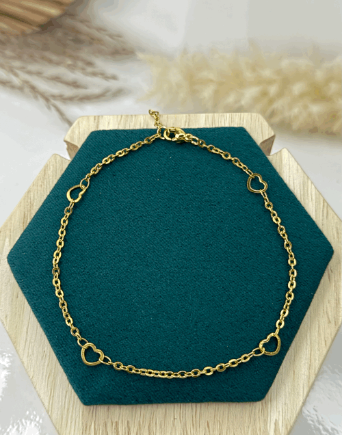 Tobillera Valentina Una pieza que nos muestra amor, tobillera fabricada en stailess steel, tiene sus detalles de corazones que la hacen delicada y radiante. Una pieza que sin duda alguna te dará ese toque de sutileza.