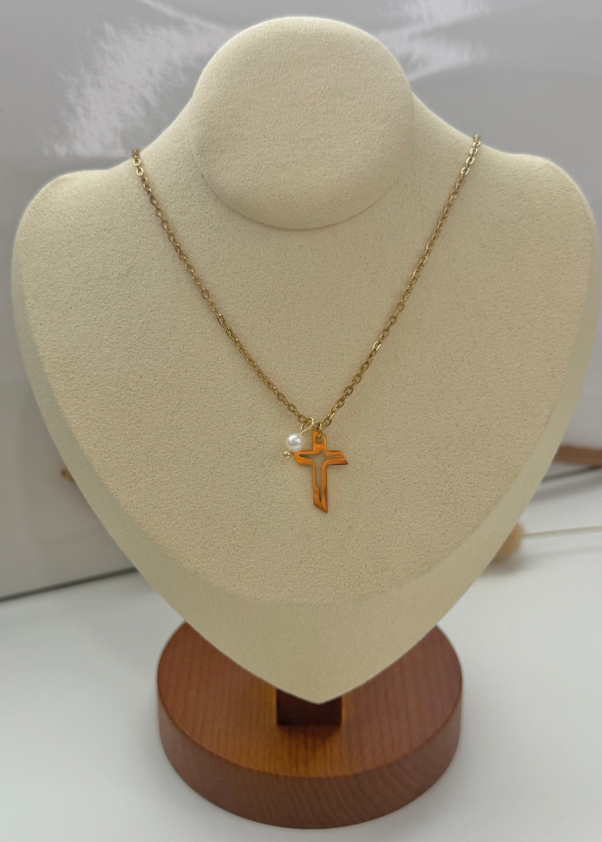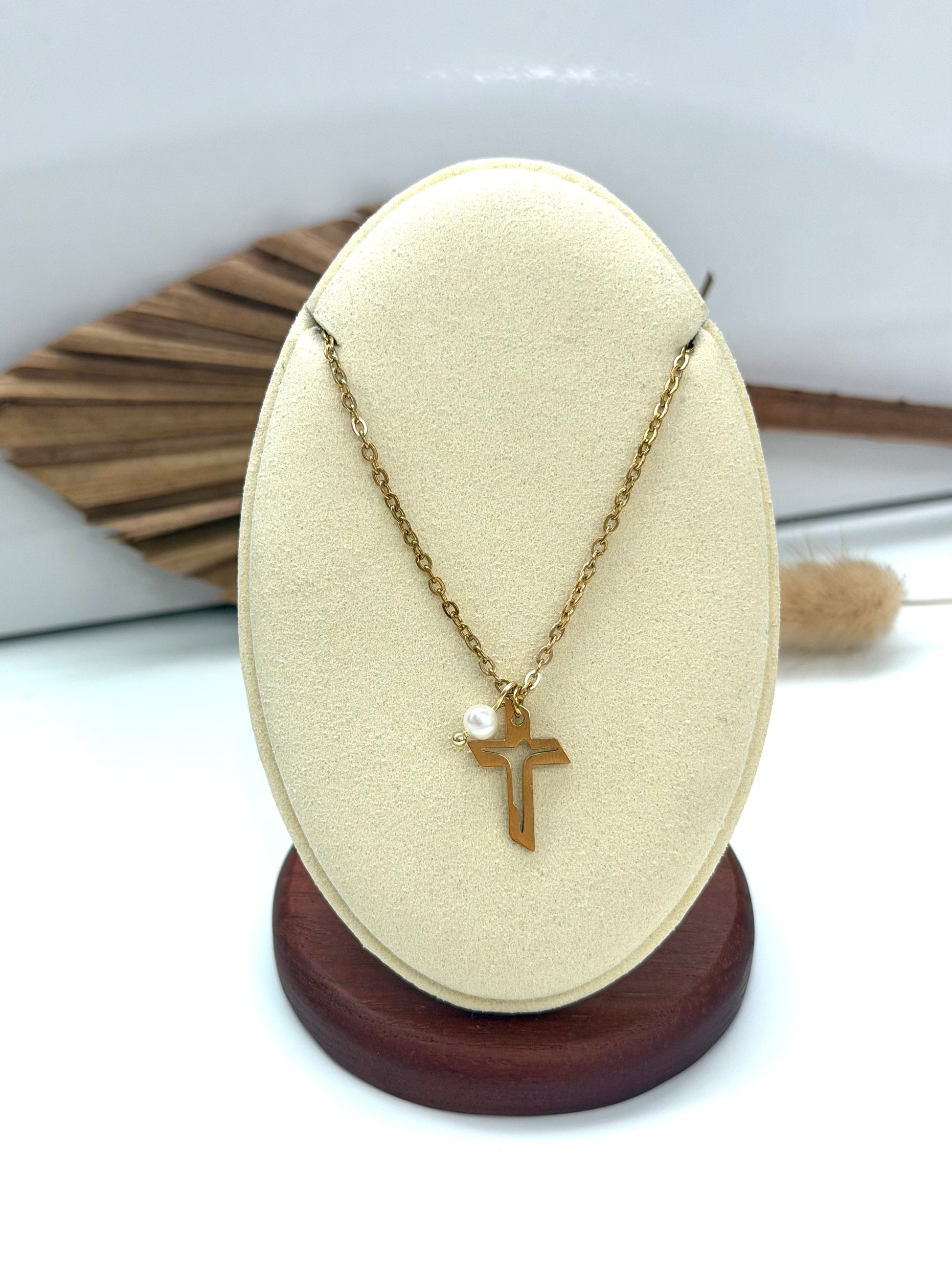 Hermosa cadena cruz, delicada por su detalle en silueta de Yesus.